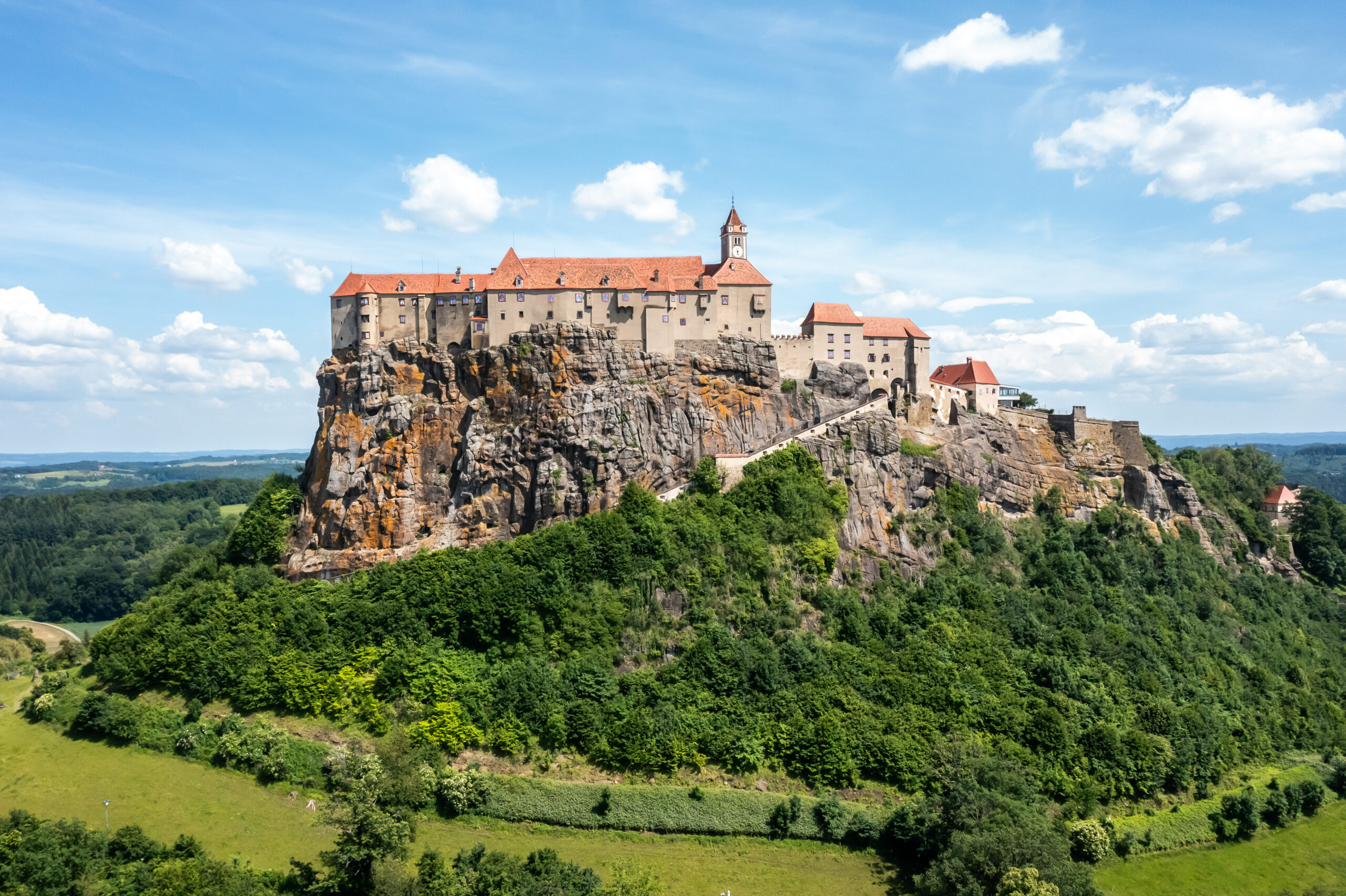 One of the unique features of Riegersburg Castle is that it sits on a cliff. Why was it built on such high ground, and what was its main purpose? Visitors can also reach it by climbing – how do you ensure their safety in this regard?